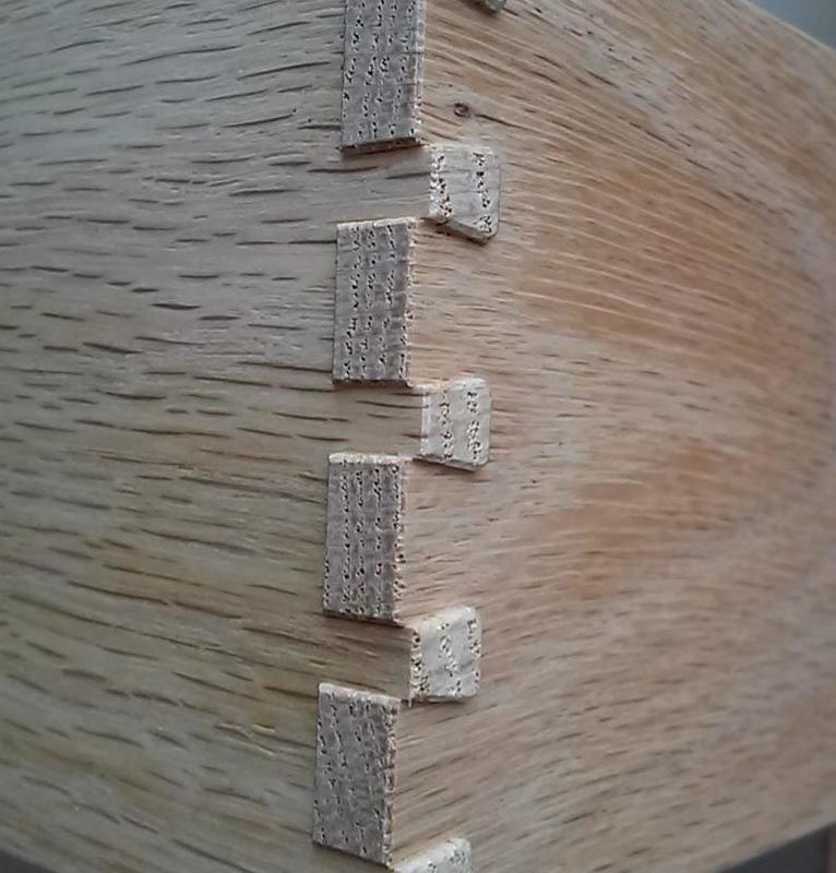 Oak box tray with proud dovetail corner joints and Cherry bottom. The tray was sized to accommodate 3 x 5" storage bags and measures ~3-5/8 x 7-3/8 x 3". The tray is finished, inside and out, with WB acrylic.[ comment | link | top ]