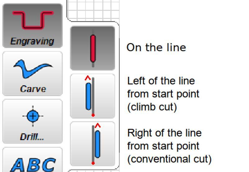 One of the key functional differences between Estlcam and Easel is that Easel can only cut inside/outside of a closed line/path (e.g. a circle). Any shape with ends that don't meet (e.g. a line) can only be "Cut on shape path". I'm guessing that the closed line restriction/awareness is why Easel will never cut into an adjacent line (on the same closed path). Any irregular pocket cutting (e.g. text) with a straight bit is affected. If the space between two lines is smaller than the bit, Easel won't cut it. While Estlcam will cut into the adjacent line if the space between two lines (e.g. text) is smaller than the bit, it can cut to the right or left of open paths, e.g. lines.